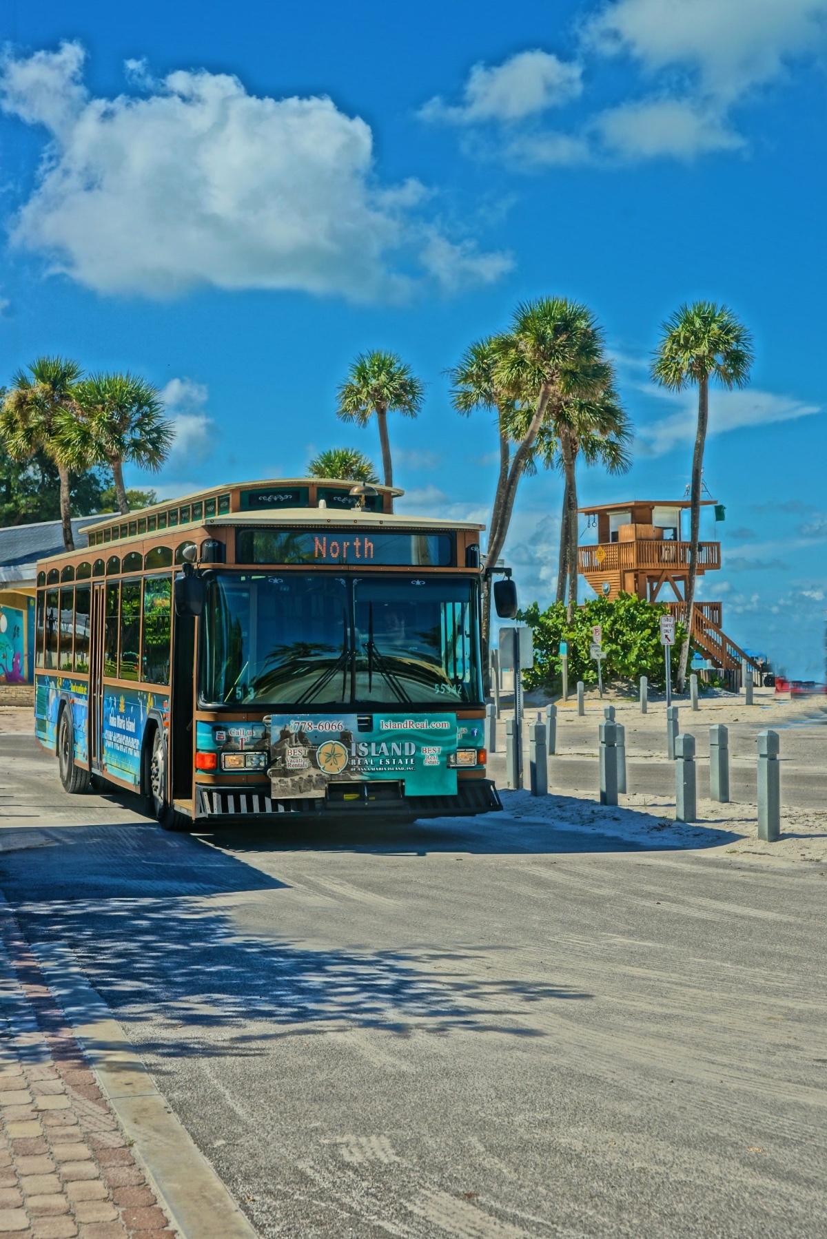 The free air-conditioned Anna Maria Island Trolley is one of the best ways to get around: